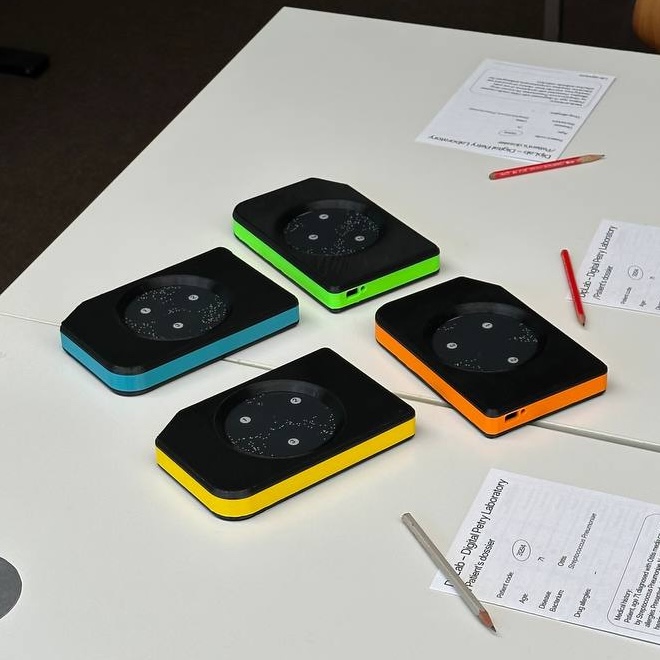 DipLab is used in a workshop format where students receive fictional patient records describing illnesses and allergies, then test possible treatments with the digital device. By combining simulation, role play, and collective discussion, the activity helps high-school students understand antimicrobial resistance, the use of antibiotics, and the process of prescribing treatments.